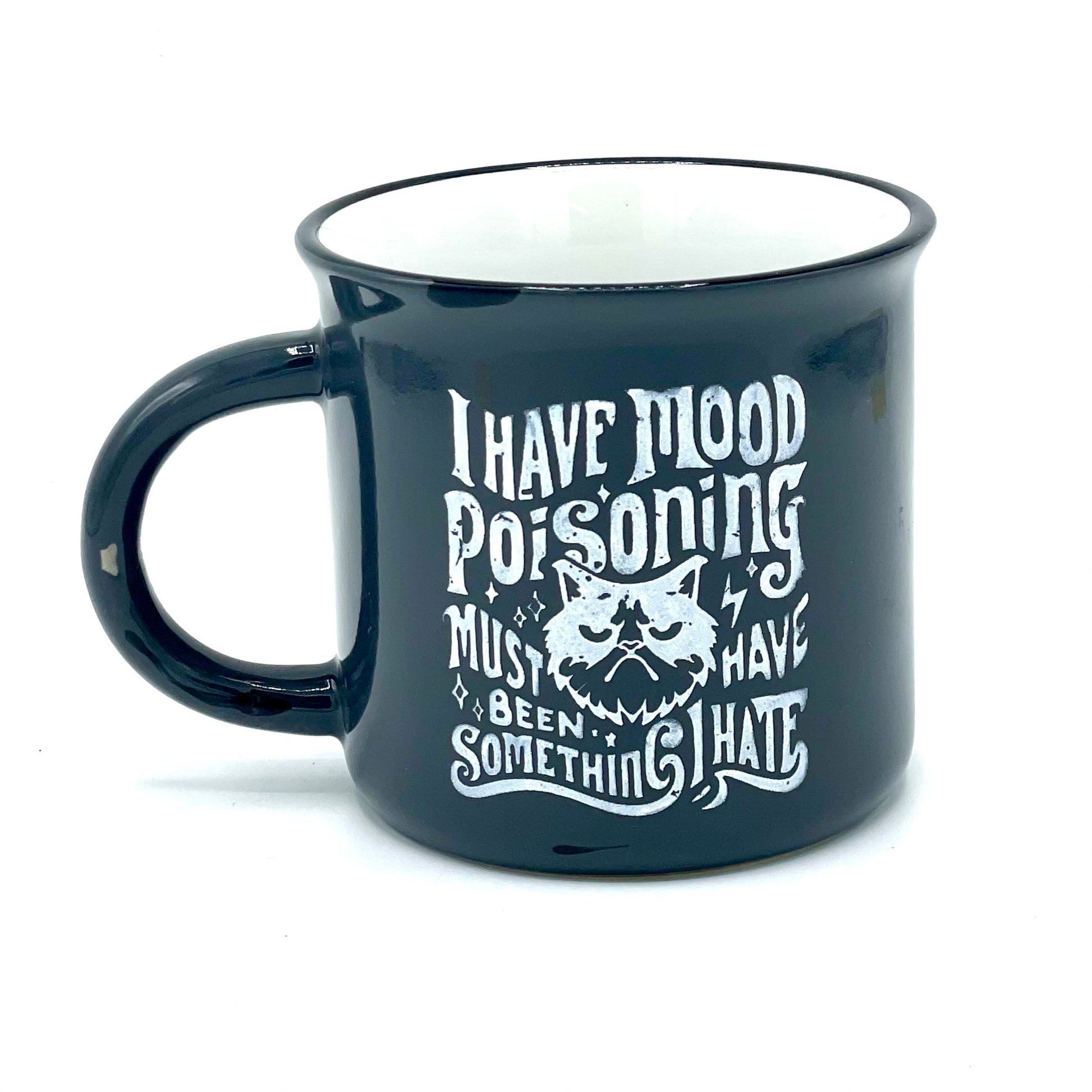 • All mugs feature distressed black matte patches and have a contrasting bright white interior
